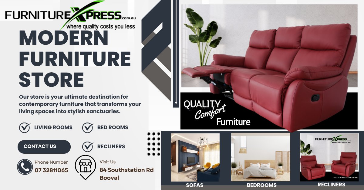 Your local destination for affordable, quality furniture in Ipswich. Located at 84 South Station Road, our showroom features a wide range of mattresses, lounge suites, bedroom furniture, living and dining room essentials. Whether you’re after a budget-friendly single mattress, a stylish leather lounge, or a full bedroom suite, we’ve got something to suit every home and lifestyle. We offer fast local delivery across Ipswich and surrounding areas, with flexible finance options available. Visit us in-store to experience our furniture first-hand or browse online for great deals. At Furniture Xpress Booval, comfort, style, and value are just around the corner. Find out why locals trust us for all their home furniture needs.
